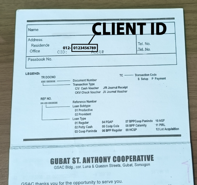 Our Client ID is different from the Account Number. The Account Number is a unique set of numbers assigned to your loan or savings account. The Client ID, on the other hand, is the identification for your profile and membership in GSAC. This is often used when registering for the General Assembly or when paying via GCASH.