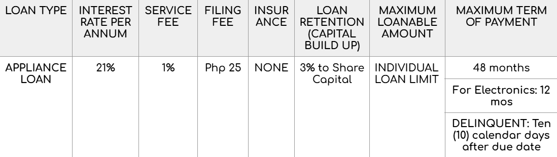 Commodity > Ito ay ay loan para sa pag-purchase ng mga pangunahing needs gaya ng rice, groceries at feeds > goods ang nakukuha dito at hindi cash > ang loanable amount ay naka base sa membership classification > ito ay dapat bayaran sa loob ng 30 ...