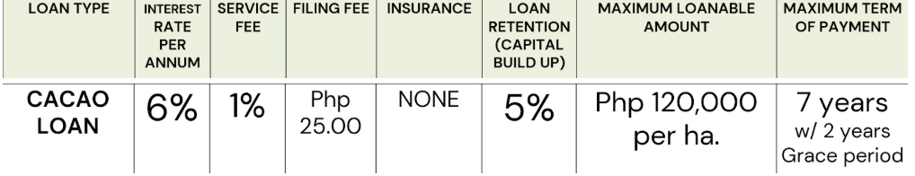 Agriculture > ang loan na ito ay para sa mga farmer-members (associate man o regular) > saklaw ng loan na ito ang rice farming, hog raising, livestock, at fish farming Loan Requirement Signed Loan Form Land Title for rice farming (if owned) ...